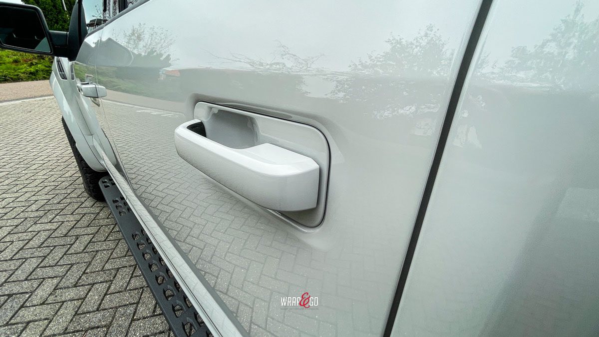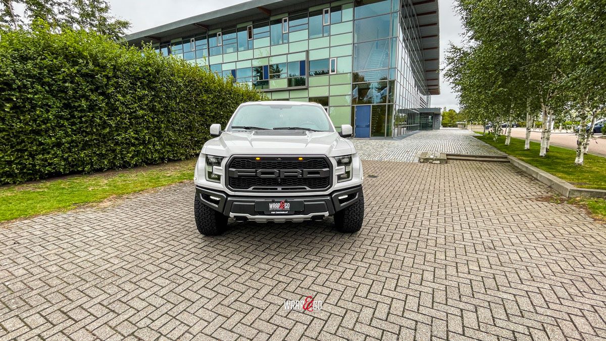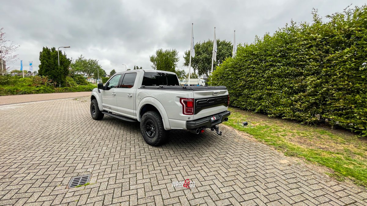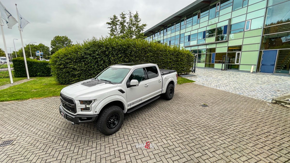 Deze Ford Raptor hebben we gewrapt in 3M High Gloss Storm Grey. De kleur geeft de truck een frisse, moderne look, maar blijft wel stoer door de hoogglans finish en de donkere accenten zoals de grille, velgen en de rest van het zwartwerk.