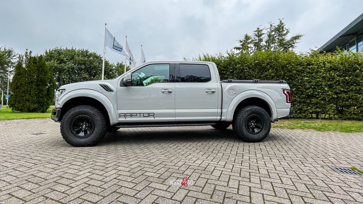 Om het geheel compleet te maken is ook de Raptor-belettering aangebracht op de zijkant, precies zoals het hoort bij deze uitvoering. Het resultaat is een superstrakke Raptor met een cleane, maar toch ruige uitstraling.