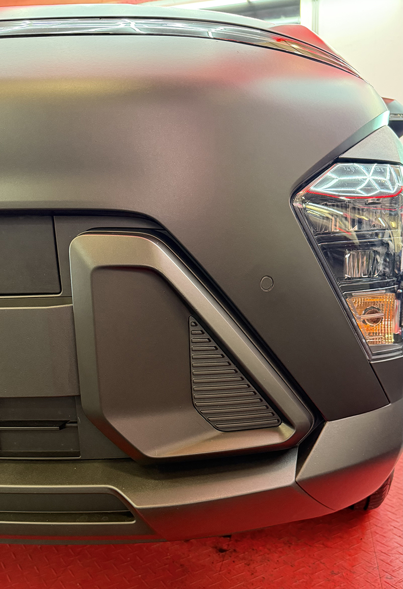 Voor deze Hyundai Kona Electric hebben we gekozen voor een complete transformatie met 3M Matte Deep Black car wrap. De matte afwerking versterkt het futuristische design van de Kona en geeft de elektrische SUV een krachtige, minimalistische uitstraling.