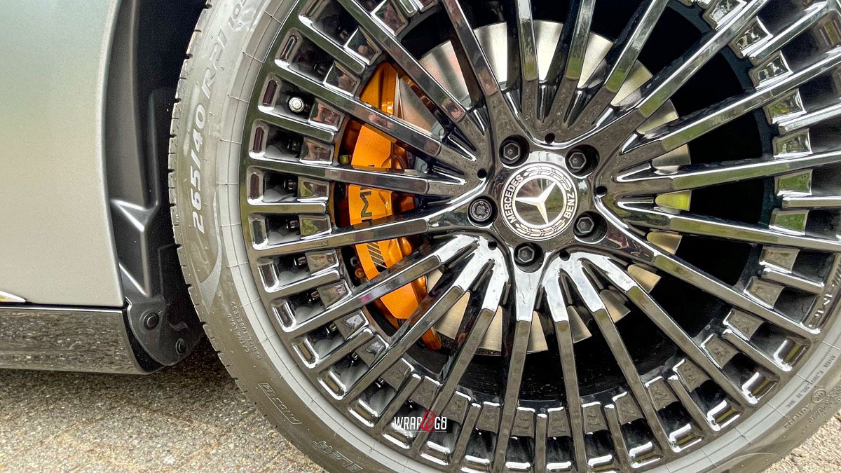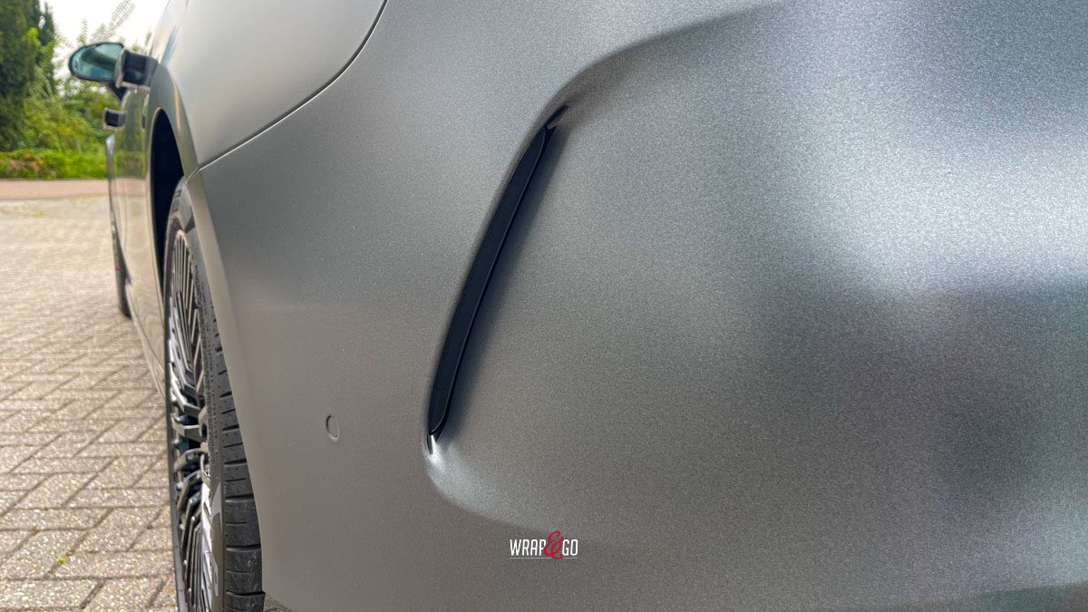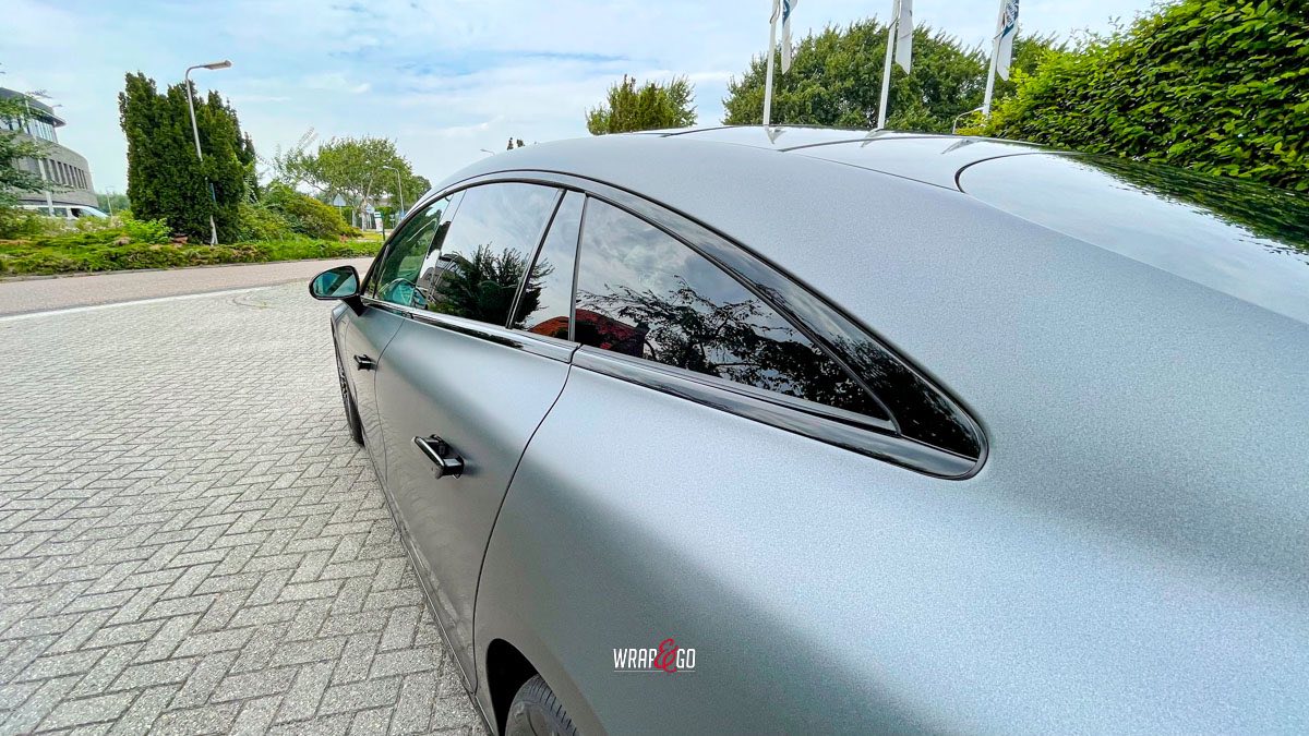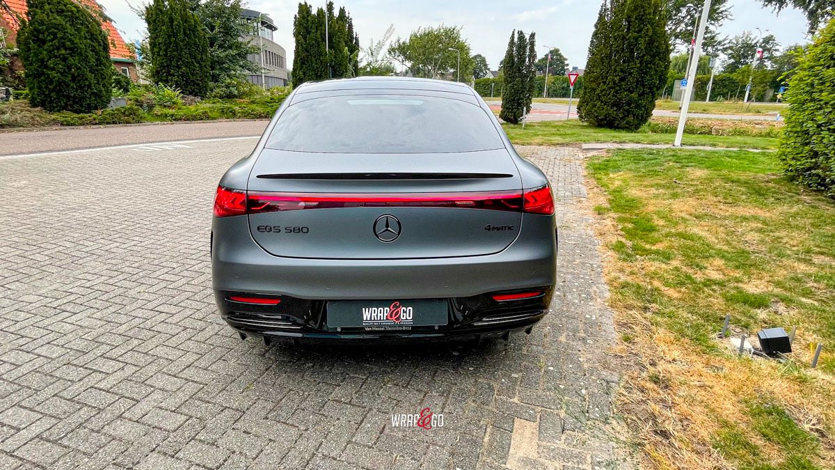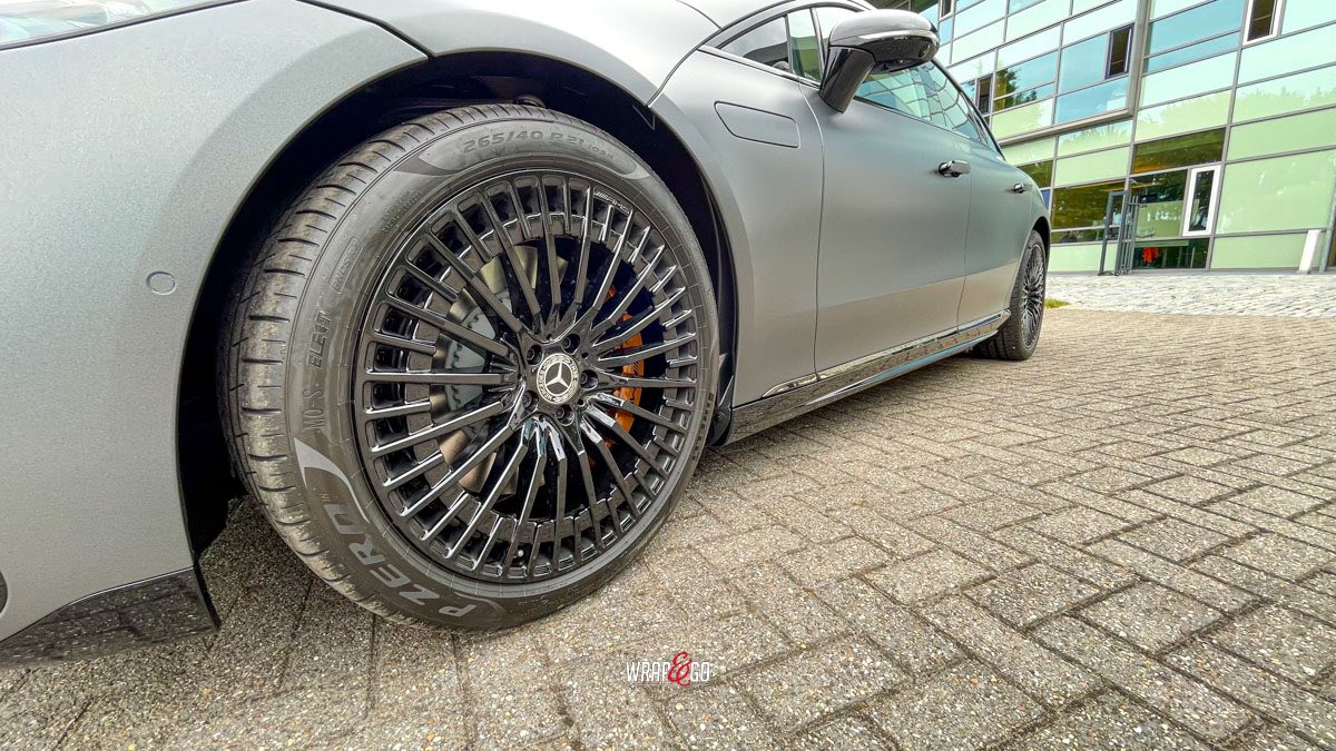Deze Mercedes EQS hebben we gewrapt in PWF Matt Dark Charcoal. De matte charcoal-kleur past perfect bij het strakke, futuristische design van de EQS en geeft ’m een rustige maar super krachtige uitstraling. Door de matte finish lijken de lijnen nog strakker en komt de auto extra “clean” over, zeker in combinatie met de donkere details en velgen.