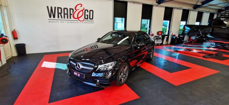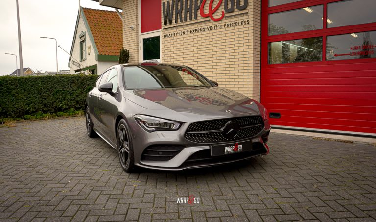 Mercedes.wrappen.CLA-3M.Satin.Dark.Grey-Zwarte.Hoogglans.striping-3