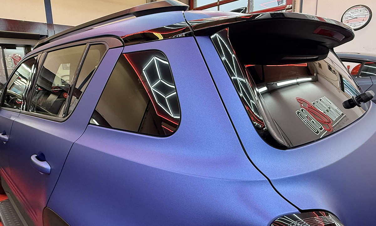 Voor een net en compleet eindresultaat hebben we ook de binnenkant van de voorportieren en de sponningen meegewrapt, zodat de kleur mooi doorloopt bij het openen van de deuren. De rest van de auto is bewust strak en clean gehouden, waardoor het contrast met de zwarte accenten en details goed tot zijn recht komt. Het resultaat is een frisse, moderne Renault 4 met een unieke look.