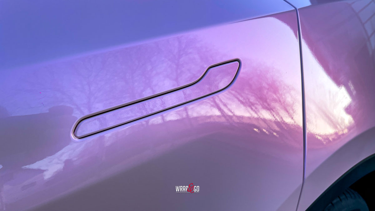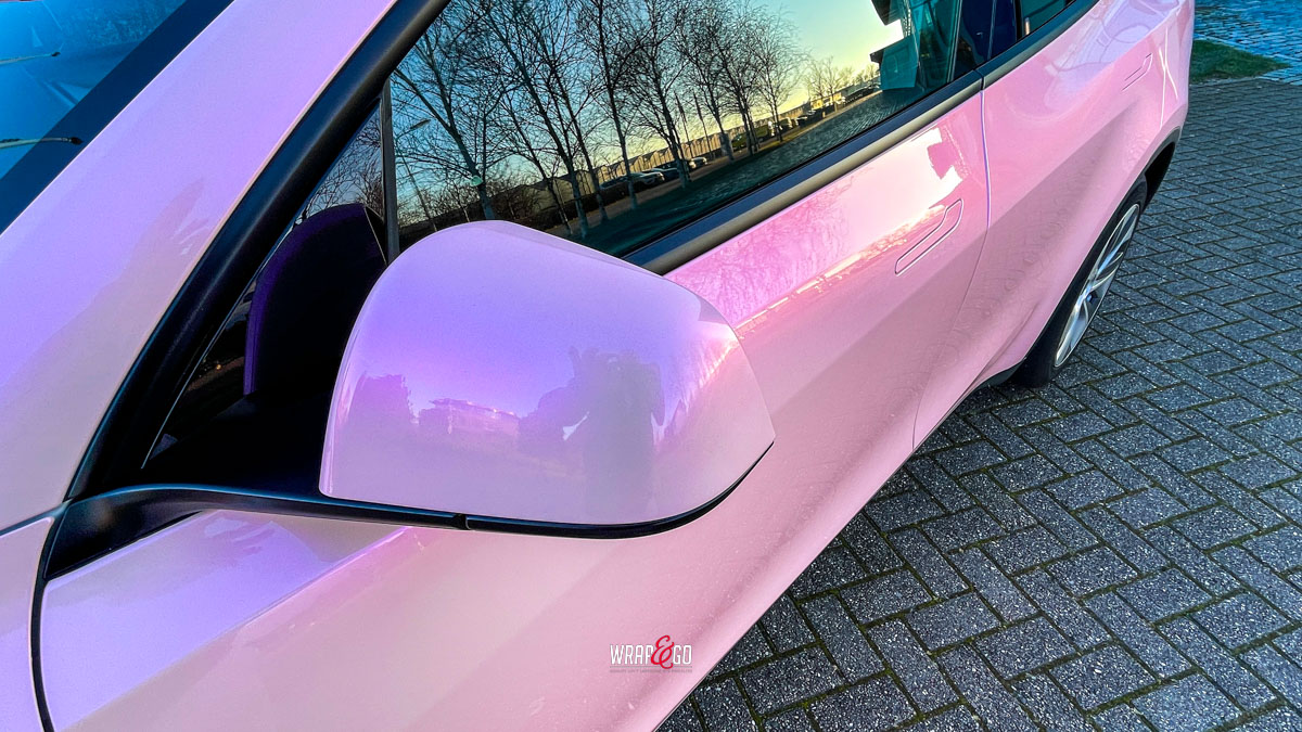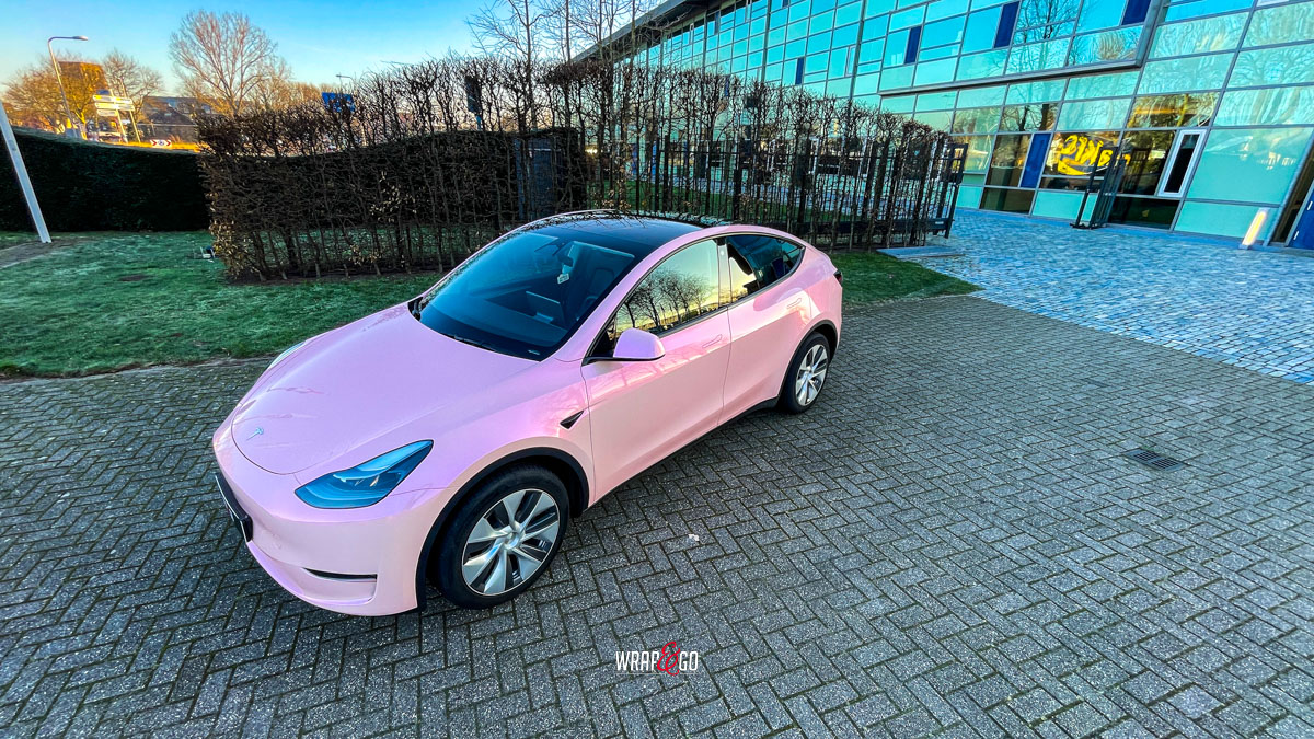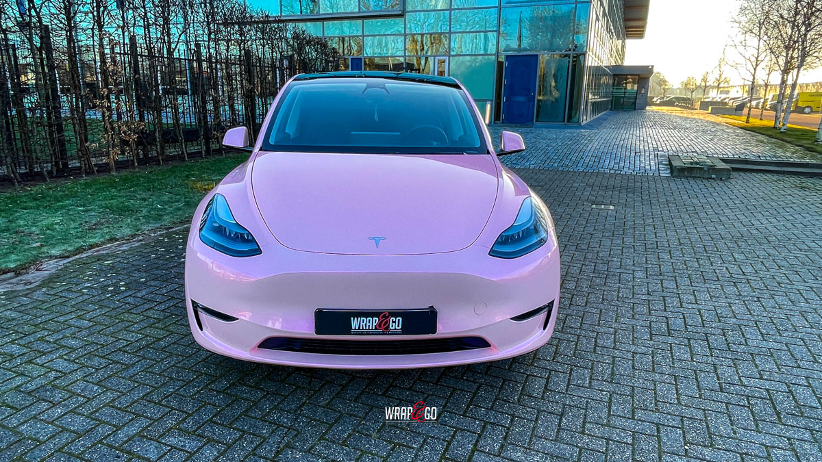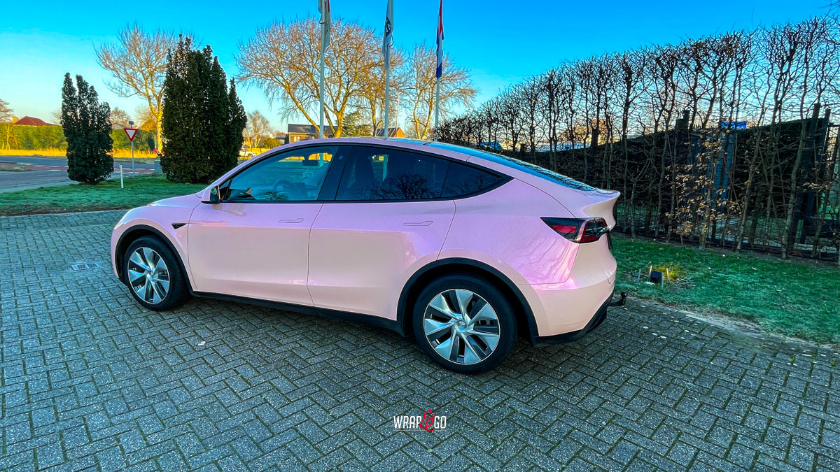 De zachte roze kleur verandert subtiel met de lichtinval en geeft het elektrische karakter van de Tesla een vrolijke, persoonlijke twist. Tegelijkertijd biedt de hoogwaardige folie bescherming tegen krassen, steenslag en UV-straling, waardoor zowel stijl als duurzaamheid worden gecombineerd.